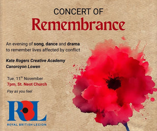 Remembrance Day ConcertTuesday, 11th November. St Neot Church 7pm Our next concert! The children are bringing such maturity to the rehearsals for this. There’s something profound about young voices delivering art on the theme of conflict. We’re also delighted to be joined again by the wonderful Canoryon Lowen.It’s not one to be missed.Come on the door, pay as you feel, in support of the Royal British Legion