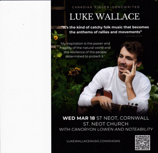 Come and join us for a singers workshop and informal concert with Canadian singer songwriter Luke Wallace, with Canoryon Lowen and Noteability Community Choir.